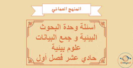 إليكم أعزائي الطلاب أسئلة وحدة البحوث البيئية و جمع البيانات علوم بيئية حادي عشر، نقدمه لكم من خلال منصة أفدني عمان، تبعاً للمنهج الصادر عن وزارة التربية والتعليم في عمان، حيث بإمكانكم التحميل بصيغة PDF سهل المعاينة و كذلك أيضاً التحميل.