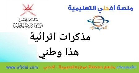مذكرات إثرائية هذا وطني للفصل الدراسي الثاني الذي تقدمه لكم منصة أفدني التعليمية تبعاً للمنهج الصادر عن وزارة التربية والتعليم في سلطنة عمان.
