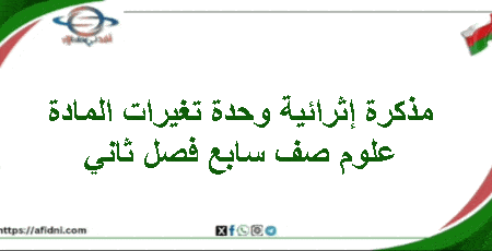 نقدم لكم في منصة أفدني التعليمية مجموعة من الملخصات والمذكرات الدراسية الهامة، حيث نسعى جاهدين لدعم الطلاب في عملية المذاكرة والمراجعة الشاملة. لذلك، يسعدنا أن نقدم لكم مذكرة سؤال وجواب وحدة تغيرات المادة علوم صف سابع فصل ثاني، وفقًا لمنهج وزارة التربية والتعليم في سلطنة عمان. نتمنى لكم النجاح والتوفيق في دراستكم.