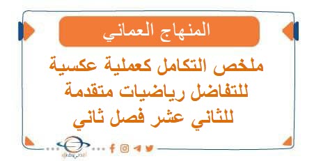تنزيل ملخص التكامل كعملية عكسية للتفاضل رياضيات متقدمة للثاني عشر فصل ثاني المنهاج العماني: