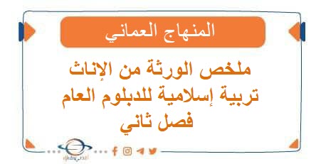 زوارنا الكرام بادروا لتحميل الملفات من منصة أفدني التعليمية، وهنا تجدوا ملخص الورثة من الإناث تربية إسلامية للدبلوم العام فصل ثاني عمان، وهذا وفق ما جاء عن منهج وزارة التربية والتعليم بسلطنة عمان.