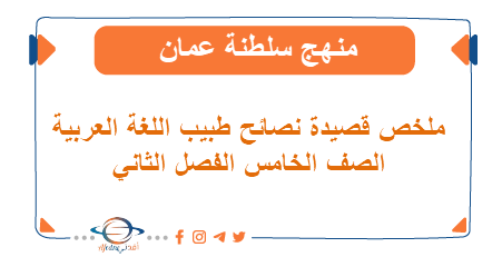 نسعى لتقديم كل ما يحتاجه طلابنا الأعزاء خلال منصة افدني التعليمية, ملخص قصيدة نصائح طبيب اللغة العربية الصف الخامس الفصل الثاني المنهاج العماني, للمنهج الرسمي لوزارة التربية والتعليم.
