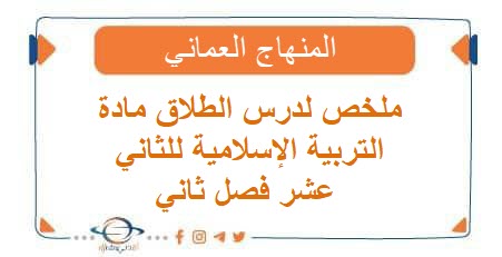 ملخص لدرس الطلاق مادة التربية الإسلامية للثاني عشر فصل ثاني المنهاج العماني: