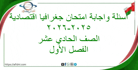 أسئلة واجابة امتحان جغرافيا اقتصادية حادي عشر فصل أول 2025-2026: