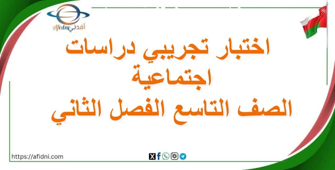 إليكم اختبارات تجريبية الدراسات الاجتماعية الصف التاسع الفصل الثاني عمان هنا في منصة أفدني التعليمية وفق المنهج المقرر من وزارة التربية والتعليم في سلطنة عمان.