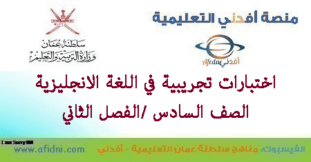 تحميل الاختبارات التجريبية اللغة الإنجليزية الصف السادس فصل ثاني وفق المنهاج العماني: