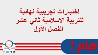 نموذج اختبار قصير ثاني لمادة التربية الإسلامية للصف السادس