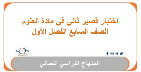 اختبار قصير ثاني علوم الصف السابع فصل اول منهاج عماني