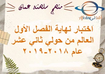 اختبار نهاية الفصل الأول العالم من حولي ثاني عشر المنهاج العماني عام 2018-2019 مـ: