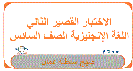نقدم لكم طلابنا نحن في منصة أفدني التعليمية الاختبار القصير الثاني اللغة الإنجليزية الصف السادس فصل ثاني عمان المكتوب وفقاً لمنهج ومعايير وزارة التربية والتعليم في سلطنة عمان