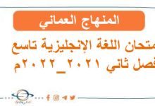 الاختبار التجريبي لغة انجليزية صف ثامن فصل ثاني منهاج عماني
