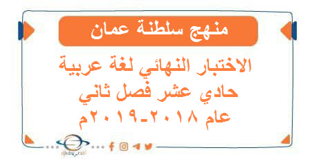 الاختبار النهائي مع نموذج الإجابة للغة العربية حادي عشر فصل ثاني 2018-2019م عمان