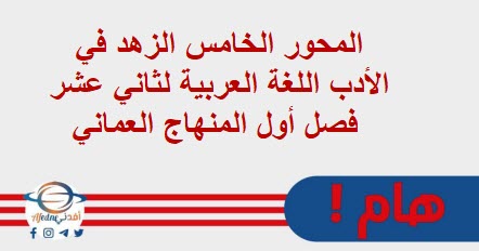 تنزيل ملخص المحور الخامس الزهد في الأدب العربي اللغة العربية للثاني عشر فصل أول المنهاج العماني: