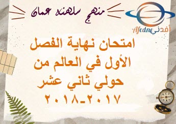 امتحان نهاية الفصل الأول العالم من حولي ثاني عشر المنهاج العماني لعام 2017-2018 مـ: