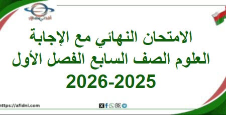 - أسئلة الامتحان النهائي لمادة العلوم للصف السابع – الفصل الدراسي الأول – سلطنة عُمان للعام الدراسي 2025-2026.