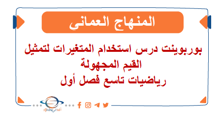 بوربوينت درس استخدام المتغيرات لتمثيل القيم المجهولة رياضيات تاسع فصل أول عمان