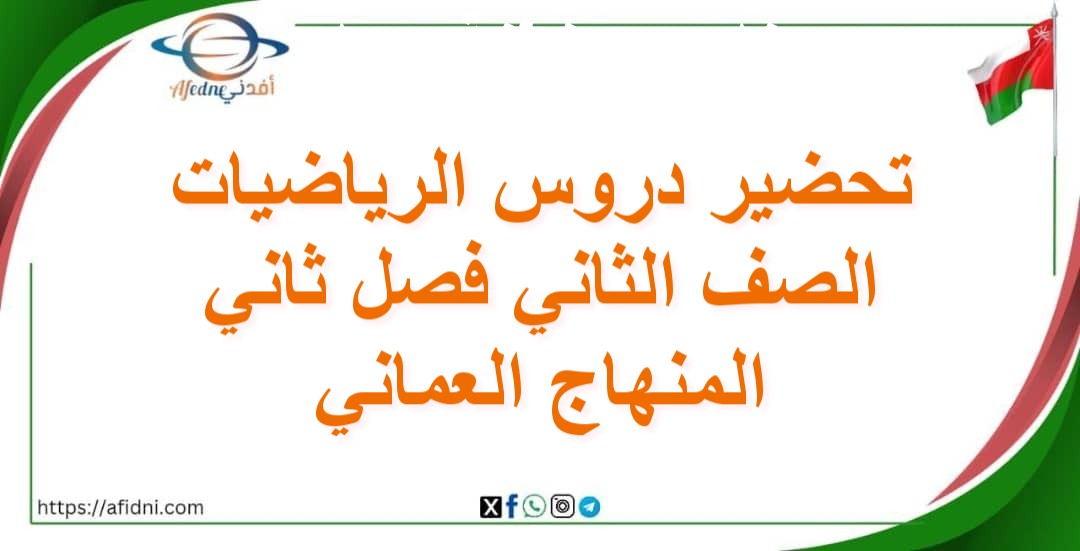 أحبتنا نقدم لكم عبر منصة أفدني تحضير دروس الرياضيات الصف الثاني فصل ثاني المنهاج العماني طبقاً للمنهاج المقرر من وزارة التربية والتعليم في سلطنة عمان.