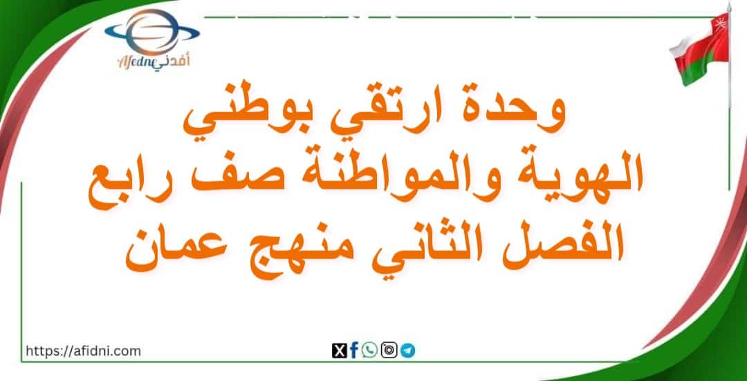 مع حرصنا الدائم على تقديم كل مايحتاجه الطالب من ملفات، وضعت منصة أفدني التعليمية هنا تلخيص وحدة ارتقي بوطني الهوية والمواطنة صف رابع الفصل الثاني منهج عما نوفق المنهج المصرح عنه من قبل وزارة التربية والتعليم العمانية.