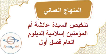 تلخيص السيدة عائشة أم المؤمنين إسلامية الدبلوم العام فصل أول منهاج عماني: