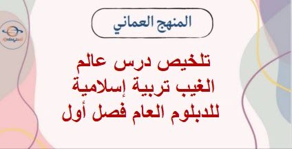 تلخيص درس عالم الغيب تربية إسلامية للدبلوم العام فصل أول المنهاج العماني: