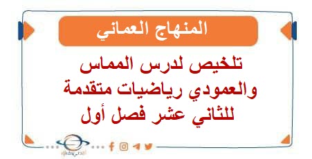 تضم مادة الرياضيات مجموعة متنوعة من المفاهيم والنظريات، وفي هذا الملخص المقدم لكم من منصة أفدني التعليمية يتم تسليط الضوء على أهم موضوعات الرياضيات المتقدمة، وضمن هذا المقال ستجدوا تلخيص درس المماس والعمودي رياضيات متقدمة للثاني عشر فصل أول، وهذا وفق ما جاء عن منهج وزارة التربية والتعليم بعمان.