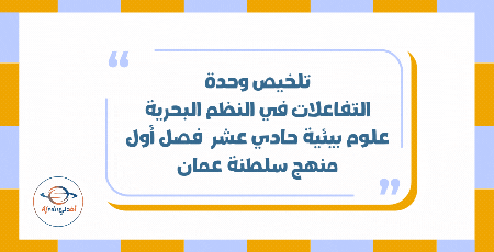 لطلاب الصف الحادي عشر: ملخص مبسط يساعدك على تحقيق أفضل النتائج، حيث ستجد تلخيص وحدة التفاعلات في النظم البحرية علوم بيئية حادي عشر، وذلك من خلال موقع أفدني عمان، وفقاً للمنهاج المقرر من وزارة التربية و التعليم بسلطنة عمان،