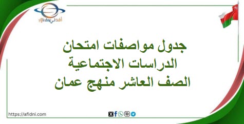 نرفق لكم عبر منصتكم التعليمية أفدني للمنهاج العماني كل ما يخص طلاب الصف العاشر، وعبر هذا المقال ستجدوا جدول مواصفات امتحان الدراسات الاجتماعية الصف العاشر منهج عمان، وهذا بالتوافق مع المنهاج الصادر عن وزارة التربية والتعليم في سلطنة عمان، أطيب الأمنيات بالنجاح والتفوق للجميع.