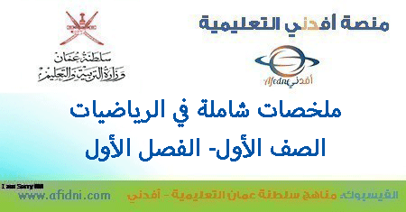 تحميل ملخصات هامة في الرياضيات للصف الأول الفصل الأول منهاج سلطنة عمان: