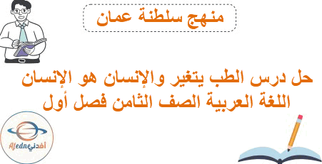 حلول الدروس يبحث عنها الجميع لذلك ومن خلال منصة أفدني التعليمية نضع لكم, حل درس الطب يتغير والإنسان هو الإنسان لغة عربية ثامن فصل أول, تبعاً لما صدر من وزارة التربية والتعليم في سلطنة عمان.