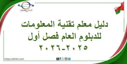 طلابنا الأعزاء في الدبلوم العام نرفق لكم عبر هذا المقال المقدم لكم من منصة أفدني التعليمية للمنهاج العماني، دليل معلم تقنية المعلومات للدبلوم العام فصل أول 2025-2026 مـ، وذلك وفق المنهاج الجديد المقرر من وزارة التربية والتعليم في سلطنة عمان، مع أطيب الأمنيات بالنجاح والتفوق للجميع..
