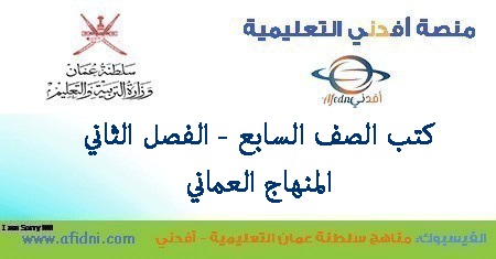 ندرج لكم في موقع أفدني التعليمي , جميع كتب منهج الصف السابع الفصل الثاني وفق المنهاج العماني الصادر عن وزارة الترببة والتعليم في عمان على شكل pdf.