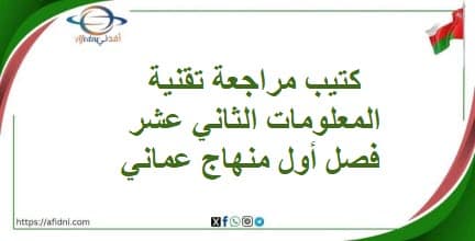 طلابنا الأعزاء في الصف الثاني عشر حرصاً منا في منصة أفدني التعليمية على أن نوفر لكم كل ما هو مهم وشامل من ملفات المراجعة النهائية، يسرنا أن نرفق لكم عبر هذا المقال كتيب مراجعة لتقنية المعلومات الثاني عشر فصل أول منهاج عماني، وذلك بالتوافق مع المنهج المقرر من وزارة التربية والتعليم في سلطنة عمان، مع أطيب أمنيات أفدني لجميع الطلاب والطالبات بتحقيق أعلى الدرجات العلمية..