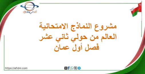 نرفق لكم عبر منصتكم التعليمية أفدني للمنهاج العماني أهم الملفات التي يحتاج إليها طلاب الدبلوم العام، ومن خلال هذا المقال يمكنكم الحصول على مشروع النماذج الامتحانية العالم من حولي ثاني عشر فصل أول منهج سلطنة عمان، وذلك وفقاً لما صدر عن منهج وزارة التربية والتعليم في سلطنة عمان، أعزائي الطلاب نسأل الله لكم بدوام التفوق والنجاح.