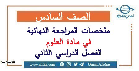 إلى طلاب الصف السادس الفصل الدراسي الثاني وضعنا لكم هنا ملخصات هامة وشاملة من اجل الاختبار النهائي في مادة العلوم وفق المنهاج المقرر من قبل وزارة التربية والتعليم في سلطنة عمان للعام الراسي 2022مـ.