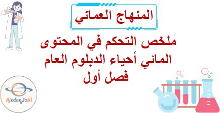 السلام عليكم زوار منصة أفدني التعليمية يسرنا نحن أن نوفر لكم كل ما هو جديد ومهم، وضمن هذا المقال تجدوا ملخص التحكم في المحتوى المائي أحياء الدبلوم العام فصل أول عمان، وهذا هو المنهاج العماني المقرر من وزارة التربية والتعليم في السلطنة، نسأل الله لكم التفوق والنجاح.