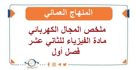 ندعوكم زوارنا الكرام في منصة أفدني التعليمية إلى متابعتنا دائمًا وبإستمرار لأننا نقدم لكم كل جديد، وضمن هذا المقال نقدم لكم ملخص المجال الكهربائي مادة الفيزياء للثاني عشر فصل أول عمان، وهذا وفق المنهاج الصادر عن وزارة التربية والتعليم بالسلطنة.