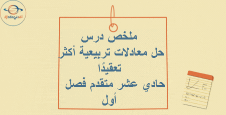 من إعداد أ. جواهر العبدلية: ملخص درس حل معادلات تربيعية أكثر تعقيدًا رياضيات متقدم حادي عشر فصل أول