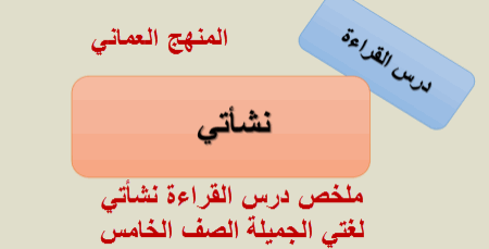 يبحث طلاب الصف الخامس بكثرة عبر منصة أفدني التعليمية عن ملخص درس القراءة نشأتي لغتي الجميلة الصف الخامس فصل أول وفقاً لمعايير وزارة التربية والتعليم في سلطنة عمان