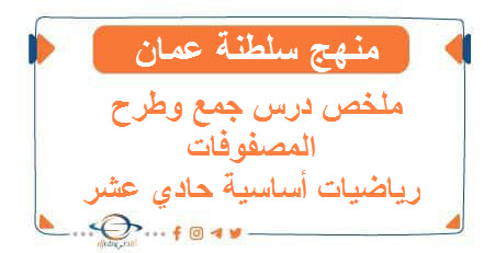 ملخص درس جمع وطرح المصفوفات رياضيات الأساسية حادي عشر فصل ثاني عمان