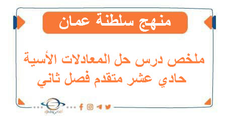 تحميل ملخص درس حل المعادلات الأسية حادي عشر متقدم فصل ثاني منهج عمان: