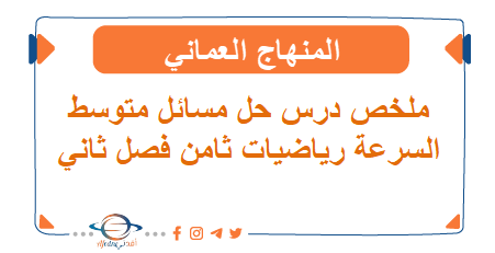 ملخص درس حل مسائل متوسط السرعة رياضيات ثامن فصل ثاني عمان