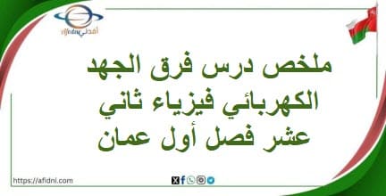 يمكن للطلاب الاعتماد على سلسلة الملخصات في مادة الفيزياء من خلال منصة أفدني التعليمية للمنهاج العماني، ومن هنا نقدم لكم ملخص درس فرق الجهد الكهربائي فيزياء ثاني عشر فصل أول عمان، وذلك بالتوافق مع المنهاج العماني المقرر من وزارة التربية والتعليم في سلطنة عمان، مع أطيب الأمنيات بالنجاح والتفوق للجميع..