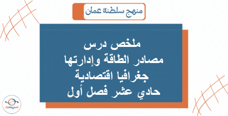 ملخص درس مصادر الطاقة و إدراتها في الجغرافيا الاقتصادية حادي عشر فصل أول منهج عمان
