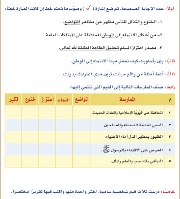 قيم حث عليها القرآن الكريم تربية إسلامية حادي عشر فصل أول
