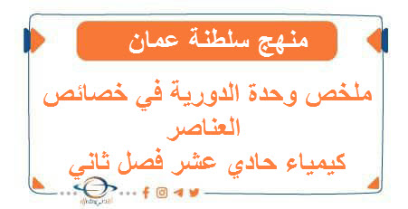 تحميل ملخص وحدة الدورية في خصائص العناصر كيمياء حادي عشر فصل ثاني منهج سلطنة عمان:
