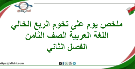 يسرنا أن نعلن لكم عن تقديم مجموعة شاملة من الملخصات والاختبارات الهامة عبر منصة أفدني التعليمية، حيث ستجدون جميع ما تحتاجونه لدعم تعليمكم وتسهيل استيعابكم للمواد الدراسية, من بين هذه المواد، يتوفر ملخص يوم على تخوم الربع الخالي لغة عربية الصف ثامن فصل ثاني, وفق منهج وزارة التربية والتعليم في سلطنة عمان.