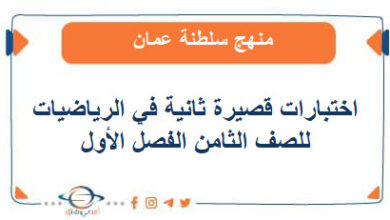 اختبارات قصيرة ثانية الرياضيات للصف ثامن فصل أول منهاج عماني