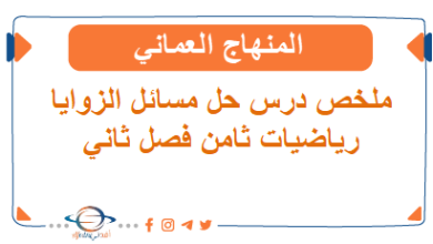 ملخص درس حل مسائل الزوايا رياضيات ثامن فصل ثاني منهج عمان