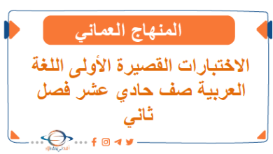 الاختبارات القصيرة الأولى في اللغة العربية حادي عشر فصل ثاني