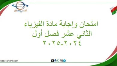 امتحان وإجابة مادة الفيزياء الثاني عشر فصل أول عمان 2024-2025